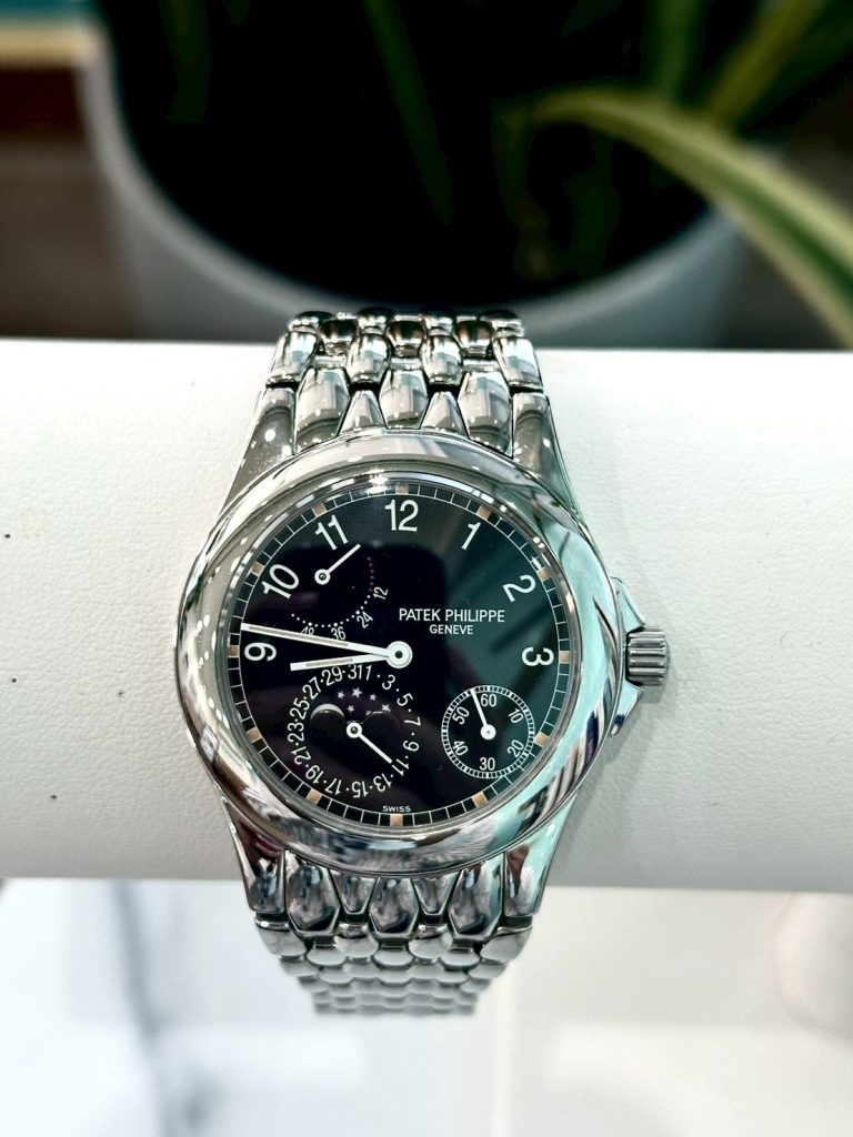 小秒盤與日期指示布局和諧,功能雖多卻不顯雜亂,體現百達翡麗一貫的設計功力。